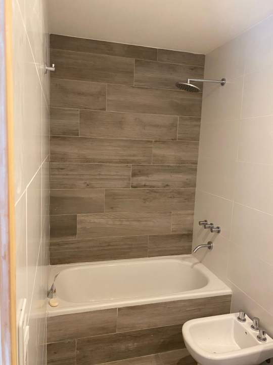 Departamento nuevo, amplio, con living-comedor, cocina integrada, balcón con parrilla eléctrica , baño completo con bañera, dormitorio matrimonial (1,40m) y cochera.