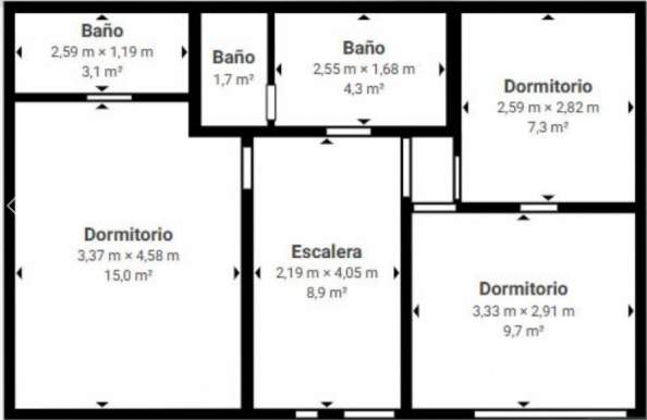 En la planta alta, dos dormitorios, uno en suite con cama matrimonial y otro con cama matrimonial con baño en planta alta.