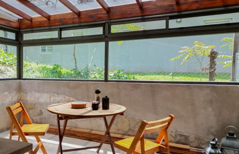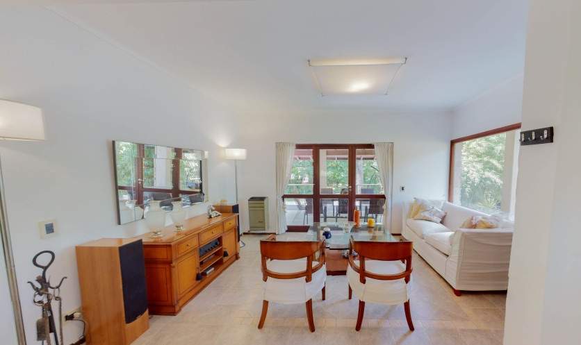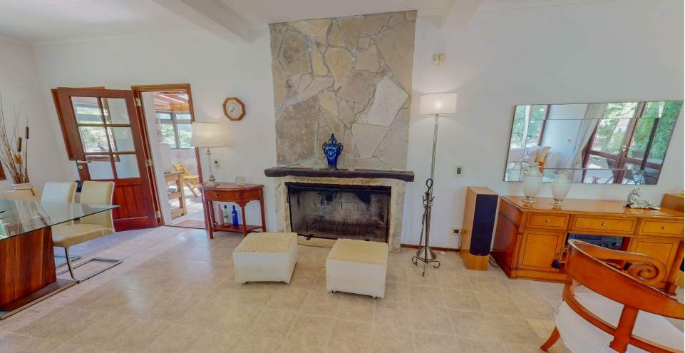 En la planta baja, amplio y luminoso living comedor con cocina integrada, hogar a leña y un toilette.