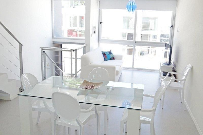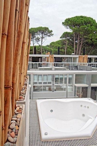 Amenities: piscina climatizada, solarium, recepción con habitación para conserje, cochera para vehículos pequeños y guarda-cosas. Cada triplex (capacidad 5 personas) ofrece decoración exclusiva, dormitorio en planta baja con suite principal y jacuzzi, baño, y en planta alta: living con sillón cama, comedor, cocina equipada, toilette y terraza privada con jacuzzi y parrilla. Alta rentabilidad: USD 12.000 por unidad en temporada alta (28/12 al 29/2).