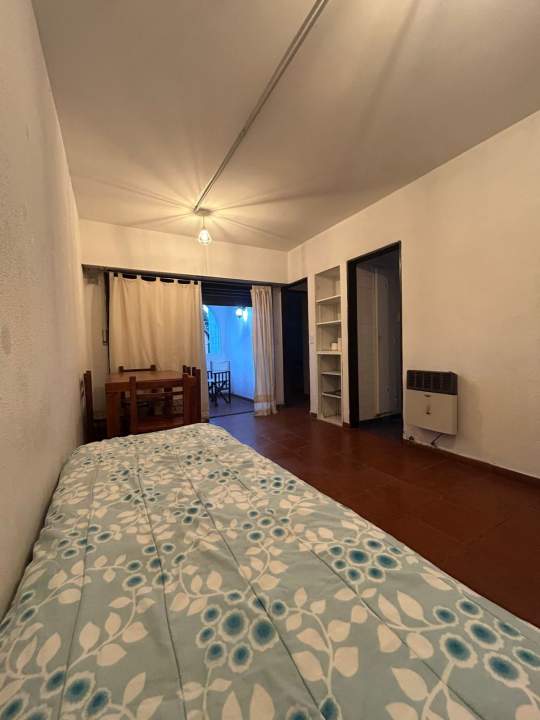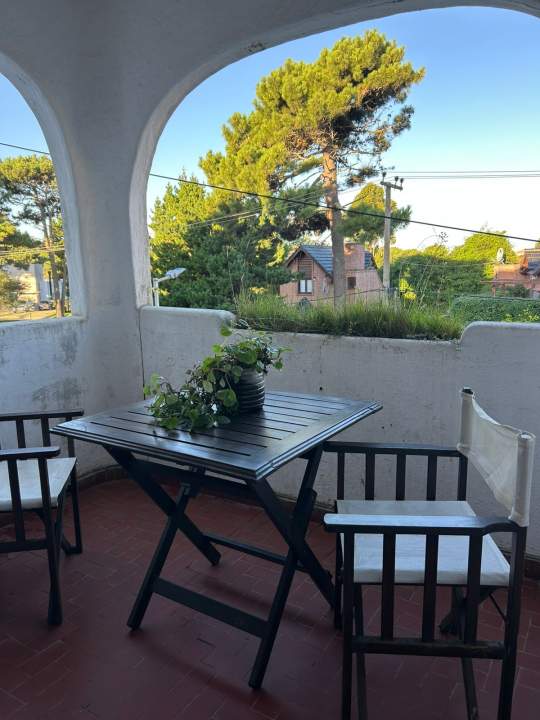 Luminoso departamento de 40m² (70m² totales) en segundo piso con cochera, a pasos del mar y el centro de Pinamar. Dos ambientes, un dormitorio y un baño. Ideal para vacaciones.